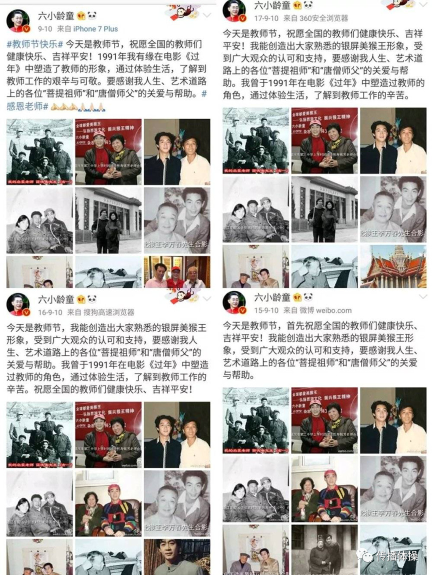 不僅微博內(nèi)容非常格式化,最重要的是,六小齡童老師每年發(fā)的內(nèi)容都差不多,同時配圖也幾乎一致。
